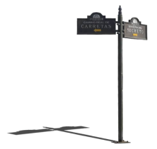 Estructuras de letreros para exterior, fabricados de acero galvanizado, acero negro y fundición de aluminio.
